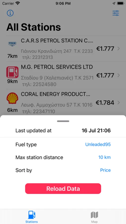 CY Fuel Application provides real-time fuel prices in Cyprus. You can use the application to find the cheapest fuel station around you and save money. The data is provided by the Cyprus Government Portal and updated regularly. The application shows all types of fuel sold in Cyprus, filters by distance, price, and fuel type. You can use the application to find and navigate to the specific petrol station.