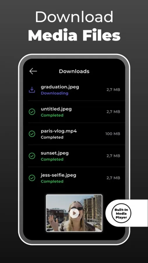 You can also download rich media files such as videos and photos directly into the Incognito app. Use built-in file manager to view photos and play videos directly on the app without saving into your photos or files app.