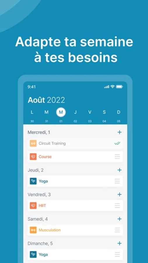 Behale is an application that centralizes all your workout sessions in a simple-to-use calendar. It also offers sports programs that adapt to your progress to help you never give up on your goals.