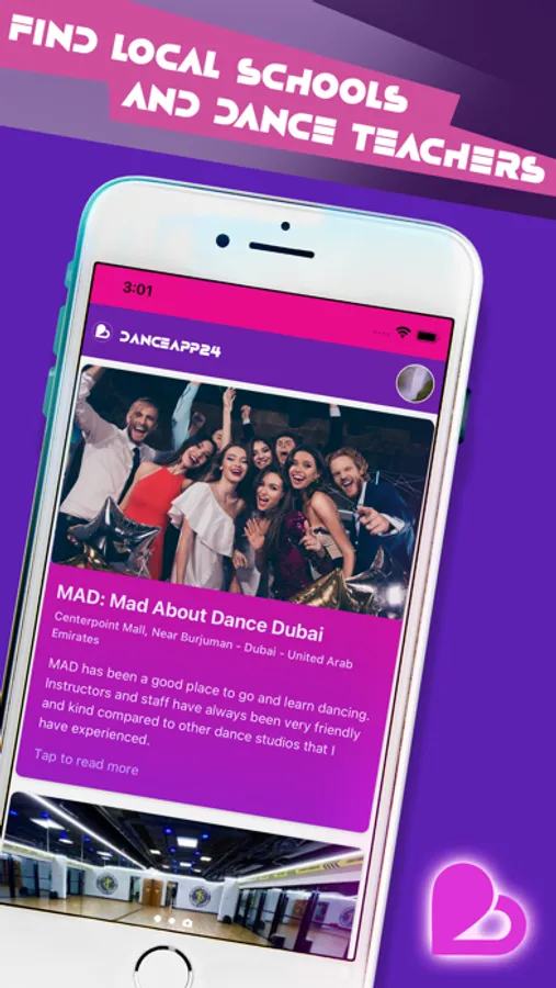 If you want to step up your game, we got you - browse dance schools in your area with just a swipe of a finger. The same goes for dance events. Flash mobs, salsa nights or a dance-off - you name it, we got it. But if we don’t, you can create an event yourself for others to join.
