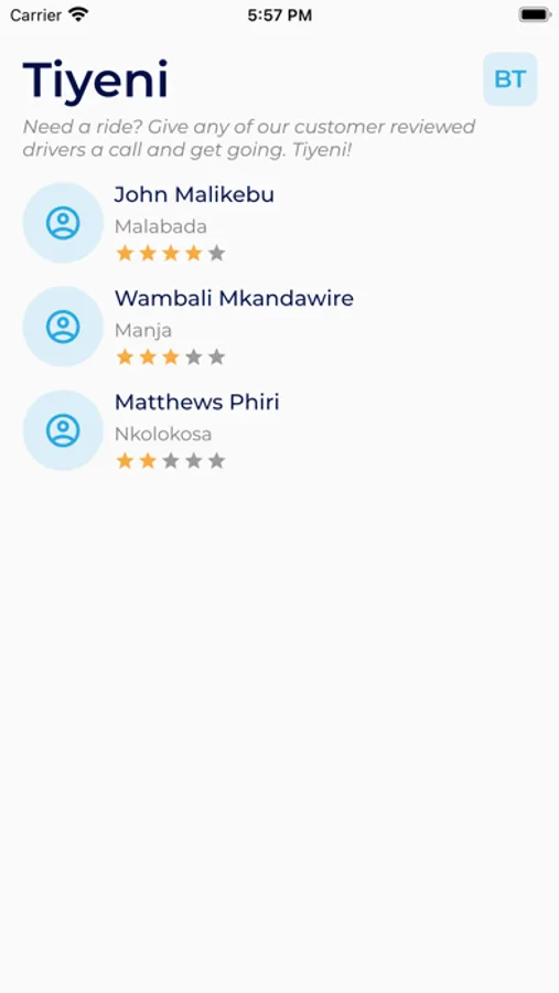 Tiyeni: Taxi ride app