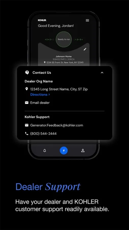 You have your dealer and KOHLER customer support readily available in the KOHLER® Energy Management App.