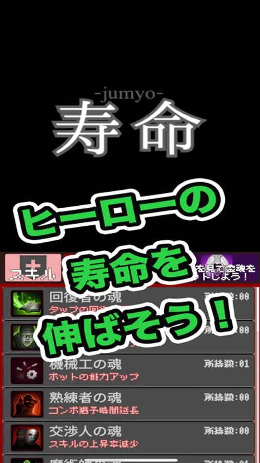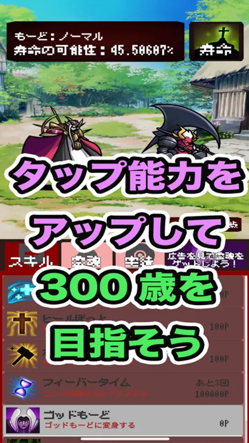 ●タップしてヒーローの寿命確率を減らせます。