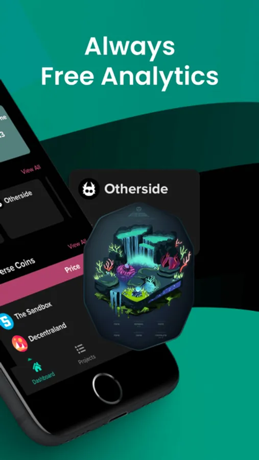 This feature allows you to list, Navigate, and compare all metaverse parcel prices by ETH floor prices across all maps. Sandbox, World Wide Webb, Decentraland, and many more projects are listed in the app.