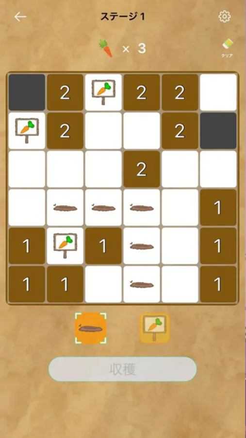 マスの中に隠れているにんじんがどこにあるか探し出すゲームです。
