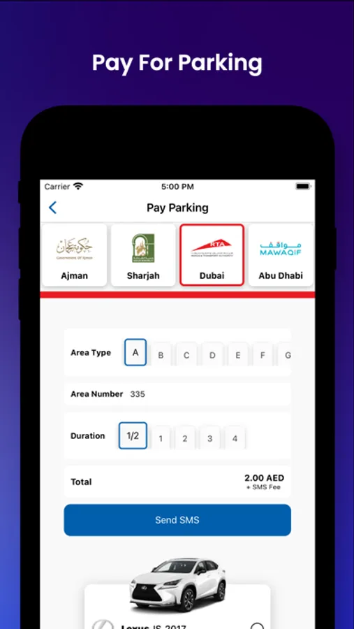 - ATOW will Create Automatically SMS message to put your car parking fees.