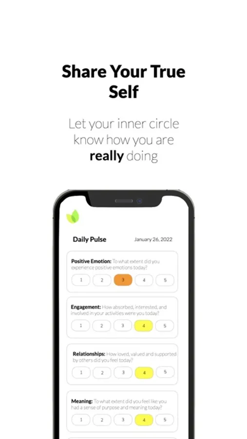 The WeTree app allows you to check in with your confidants through a quick and easy rating system that measures positive emotions, engagement, relationships, meaning and purpose, accomplishment and health, or PERMAH, on a daily basis, in addition to an open-ended questionnaire that asks you what you were grateful for that day and what you could use help with.