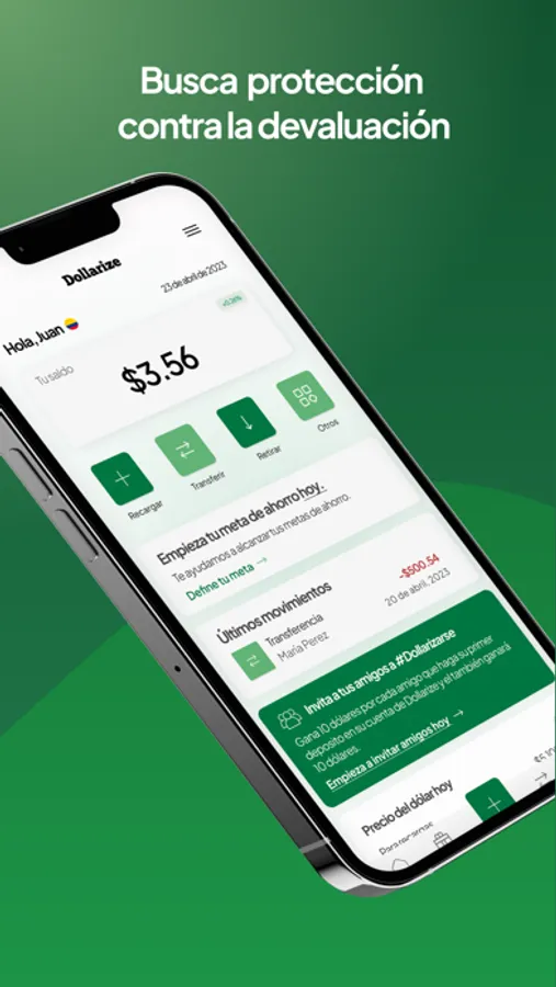 Join Dollarize, take control of your finances and protect yourself from devaluation. Become one of the millions of people who already have their money in the United States with our super-app. We are a financial company registered as a Money Services Business (MSB) with FinCEN, an office of the United States Department of the Treasury.