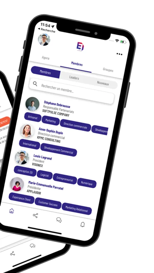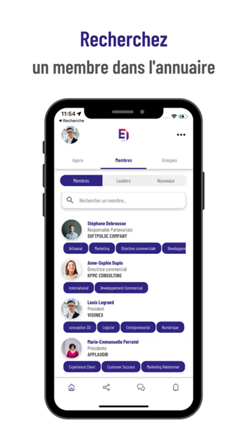 Recherchez facilement un membre de la communauté par nom, prénom, entreprise, compétence, localisation... L'essentiel pour faciliter votre networking !