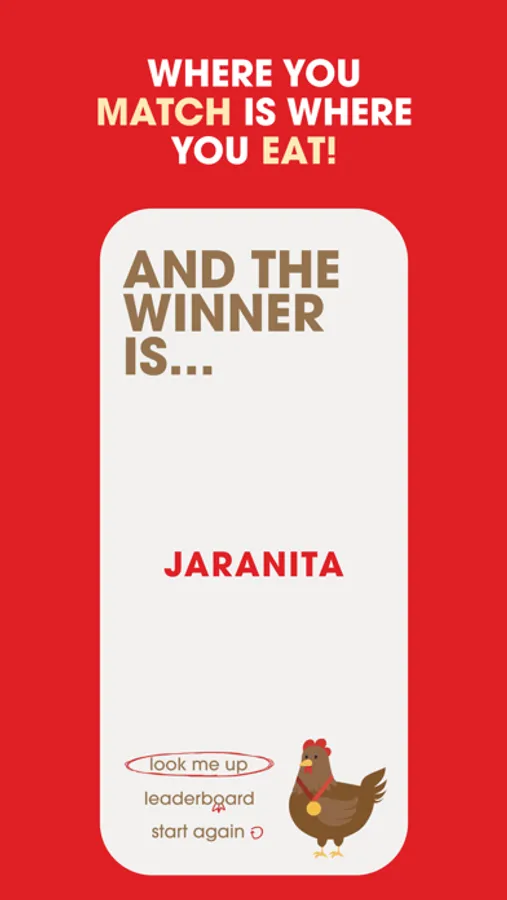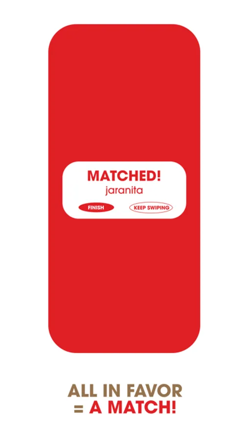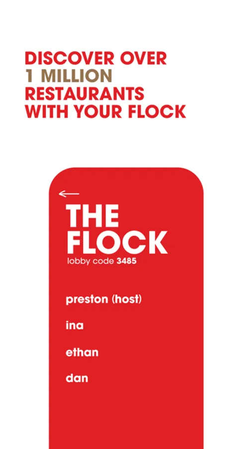 Swipe right for yes and left for no on restaurants until you find The Flock’s desired match. When everyone swipes right on the same restaurant, they match!