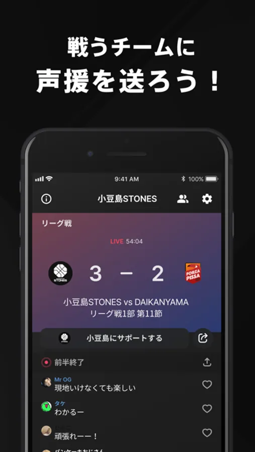 アプリを通じて、チームとの距離がぐっと近くなる。仲間が増える。チームをもっと好きになる!