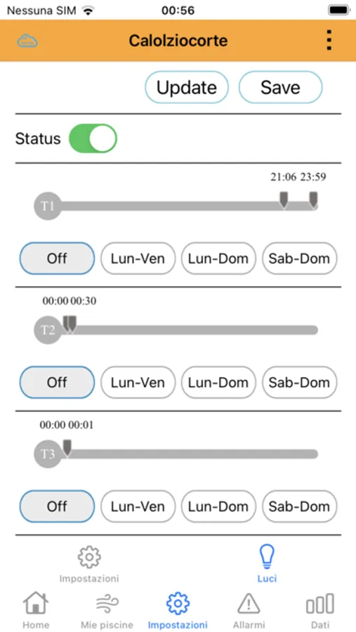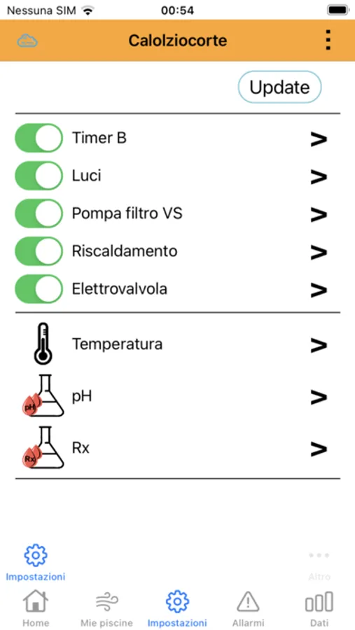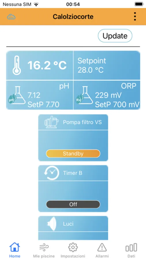 The Blulogica My Pool app is able to remotely read and write the parameters of the Blulogica Ecolink WiFi iOT devices: chlorine generators, devices for reading and regulating pH and Rx, for managing heaters, hot tubs, pumps, lamps RGB. The app user must be connected to the Internet, must login with username and password, then must select one of the devices in the list of user devices.