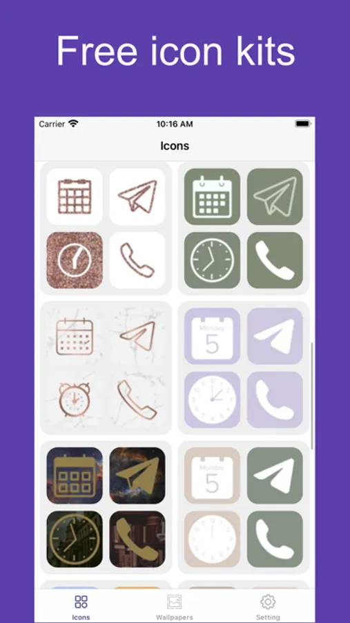 Icons Widget let you free download all the icons of your choice and wallpaper for your iPhone.