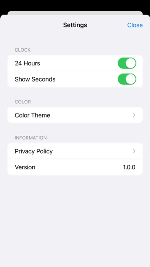 You can change 12/24 hours and seconds display of clock. You also can move month in calendar with the arrows, and back to current month by tapping the month title.
