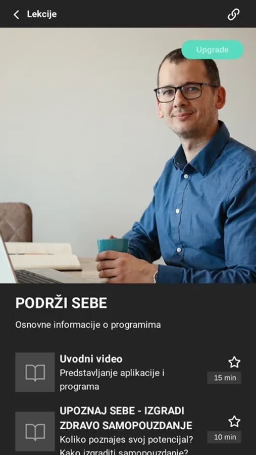 PODRZI SEBE aplikacija sadrži smernice za podsticanje ličnog razvoja i psihičkog blagostanja. Biraš program koji odgovara tvojoj trenutnoj potrebi na putu upoznavanja sebe i razumevanja sopstvenih obrazaca ponašanja. Program sadrži video i audio predavanja, nakon kojih slede kratka pitanja koja imaju za cilj da korisnika podstaknu na razmišljanje o sebi i prirodi svojih odnosa prema drugim ljudima.