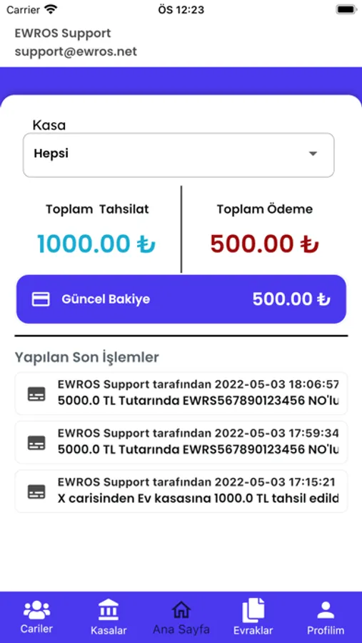 Carilerinizi ve kasalarınızı kaydedip, cariler ve kasalar üzerinden tahsilat ve ödeme bilgilerinizi kaydedebilir, Kasalar ve cariler için ekstre çıkartıp kaydettiğiniz hareketleri görüntüleyebilirsiniz. kendinizin veya carinin çekini kaydedebilir ve vade tarihi dolmadan bir kaç gün önce bildirim alırsınız.