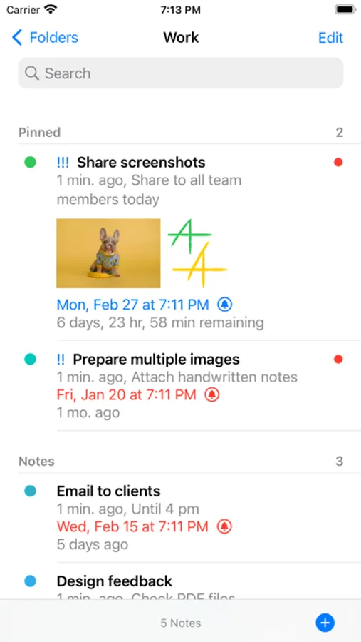 - Display notes and number of notes in the folder list