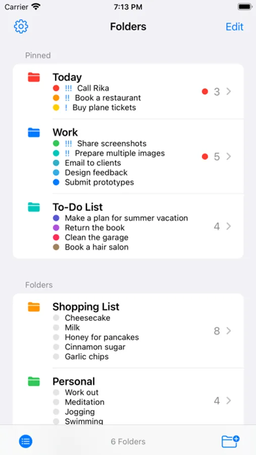 - Unlimited number of folders