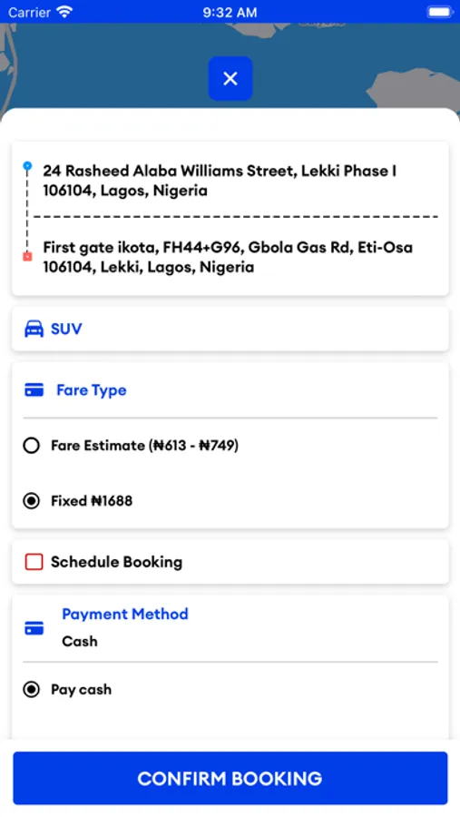 2. Start booking! The app auto-detects your location for pick-up or manually chooses your destination.