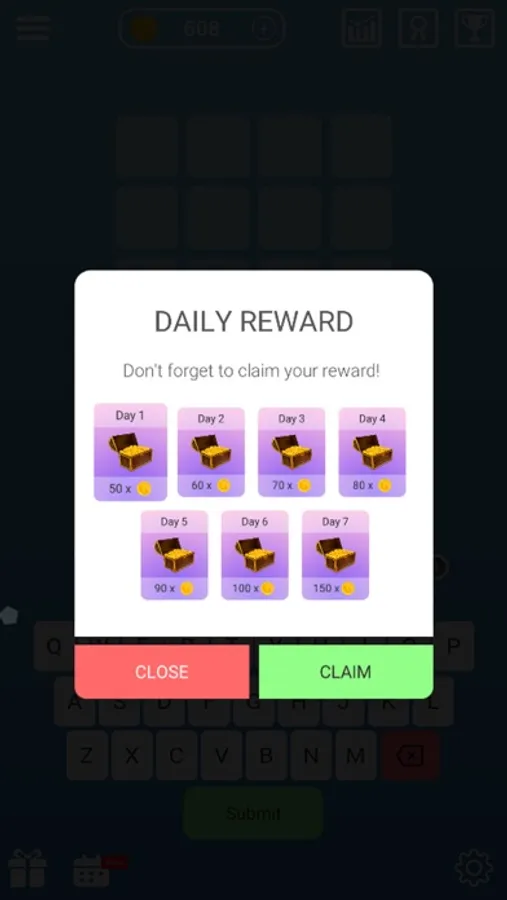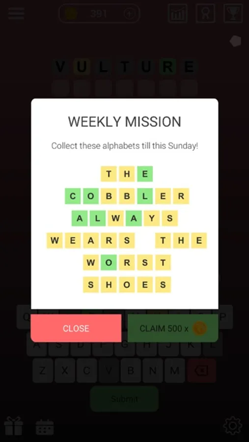 6. If you want to earn more coins, try Weekly Mission! Turn the phrase completely green to get a reward.