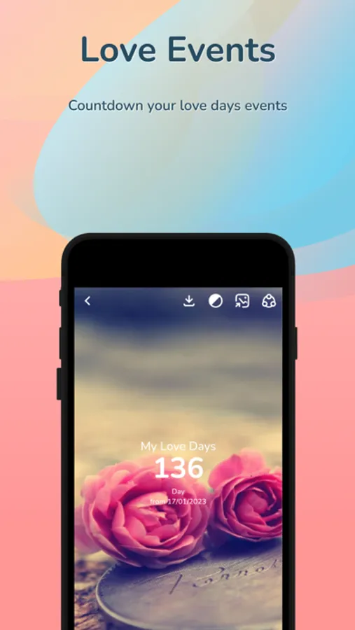 - Show love day clock by: year, month, week, day, hour, minute, beautiful seconds, number of days in love, been love together days