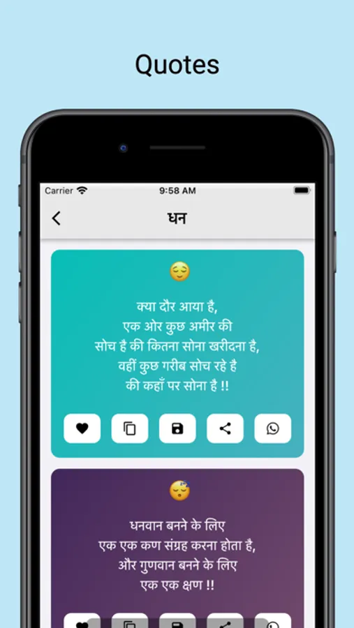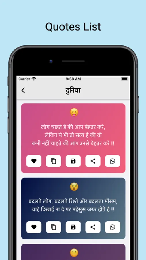 Best Quotes and Status is an app that provides an extensive collection of quotes for different categories. There are more than 50000 quotes and more than 200 categories.