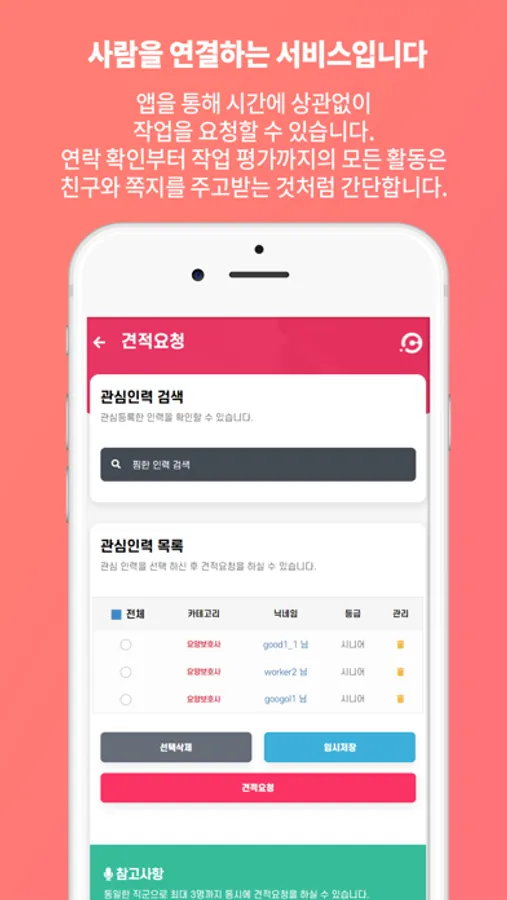 앱으로 콜부르듯 지금 우리 가족에게 필요한 간병인을 실제 후기를 바탕으로 간편하게 선택할 수 있습니다.