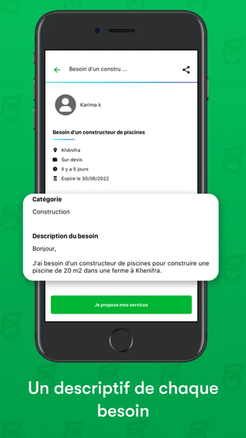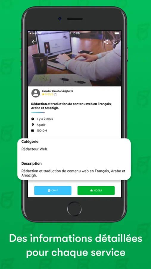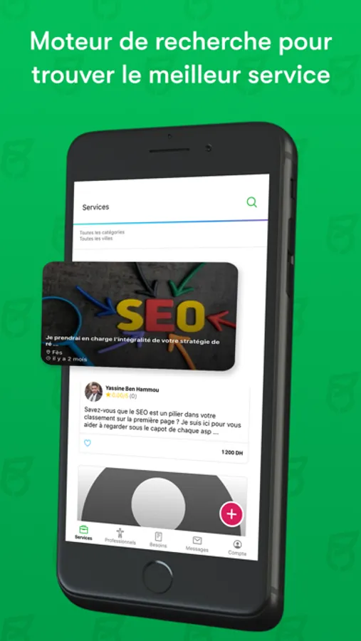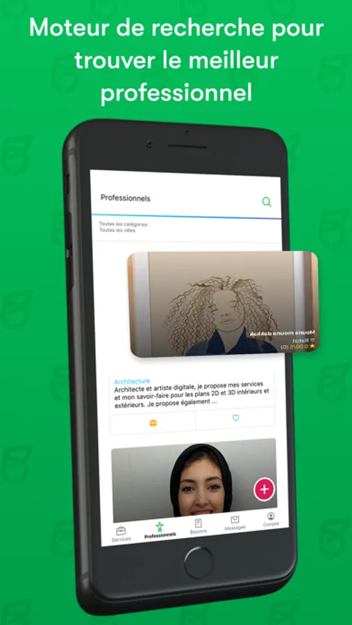 Acteur, Activité associative, Administration et business, Agencement, Agent de sécurité, Aide aux démunis, Aide aux devoirs, Aide-soignante, Animation, Animaux, Antiquaire, Architecte, Art et artisanat, Arts plastiques, Assistance comptable, Assistance informatique, Assistance juridique, Assurance et crédit, Auxiliaire de vie, Baby-sitting, Barman, Base de données, Beauté et Bien-être, Bénévolat, Bijouterie, Boucher, Boulanger, Bricolage, Broderie, Calligraphie, Cameraman, Carreleur, Carrossier, Casting, Caviste, Chanteur, Chasseur d'appartement, Chauffeur, Chef de cuisine, Chef de partie, Chef de rang, Climatisation-Chauffage, Coaching personnel, Coaching sportif, Coiffure, Comédien, Commerces, Commercial, Commis de cuisine, Communication, Conciergerie Airbnb et autres, Conseil autoentrepreneur, Conseil et consulting, Conseil fiscal et impôts, Construction, Contenu et Traduction, Cordonnier, Cours à domicile, Cours collectifs, Cours d'allemand, Cours d'anglais, Cours d'arabe, Cours d'arts appliqués, Cours d'espagnol, Cours d'informatique, Cours d'italien, Cours de chinois, Cours de conduite, Cours de cuisine, Cours de danse, Cours de français, Cours de japonais, Cours de maths, Cours de musique, Cours et Formations, Cours individuels, Coursier, Couture, Couvreur, Covoiturage, Création site e-commerce, Création site internet, Cuisine à domicile, Cuisinier, Cuisiniste, Cybersécurité, Danseuse-Danseur, Décoration, Déménagement, Dépannage informatique, Designer-Infographiste, Dessinateur, Développement mobile, Développement web, DJ, Dressage d'animaux, Ébéniste, Éclairagiste, Écrivain, Élagage, Électricien, Enfants, Entretien-Réparation bateau, Entretien-Réparation moto, Entretien-Réparation voiture, Esthétique, Étalagiste, Etudes de marché, Événementiel et Arts du spectacle, Femme de chambre, Ferronnerie, Finance, Fleuriste, Formateur, Formations à distance, Formations continues, Formations professionnelles, Garde d'animaux, Garde d'enfants, Gardiennage de domicile, Gouvernante, Groupe de musique, Guide touristique, Hébergement et Immobilier, Hôtellerie et Restauration, Hôtesse d'accueil, Hôtesse de Caisse, Hypnose, Industrie, Infirmière-Infirmier, Informatique et Web, Ingénieur du son, Installation domotique, Jardinage, Journaliste, Kinésithérapeute, Lavage, Livraison de courses, Livraison de médicaments, Livreur, Location de voiture, Luthier, Magicien, Maison, Bricolage et Décoration, Maître d'hôtel, Make-up artist, Manager d'artistes, Mannequin, Marketing digital, Marketing et vente, Massage, Mécanique, Médecin, Médecine douce, Ménage, Menuisier, Modèle photo, Montage meuble, Montage vidéo, Musicien, Nutritionniste, Opticien, Organisation de voyage, Organisation des fêtes, Ostéopathe, Ouvrier du bâtiment, Parfumerie, Pâtissier, Paysagiste, Peintre, Photo, Audio-vidéo et Design, Photographe, Plats faits maison, Plombier, Poissonnier, Poterie, Réalisateur, Réceptionniste, Rédacteur Web, Régisseur, Relations presse, Relooking, Rénovation, Réparation audio-vidéo, Réparation électroménager, Réparation smartphone, Repassage, Réseaux, télécom et cloud, Ressources Humaines, Sculpteur, Secrétariat, Sécurité maison-société, Serrurier, Serveur-Serveuse, Services à la personne, Soins animaliers, Soins du corps, Sommelier, Soutien scolaire, Street marketing, Styliste, Tapissier, Tatouage, Terrassement, Tissage de tapis, Toilettage animaux, Tonte de pelouse, Tourisme et Vacances, Traduction, Traiteur, Transport, Transport de marchandises, Transport de personnes, Travail du verre, Travail du Zellige, Travaux, Tuning, Vendeur, Voix off, Webdesign.