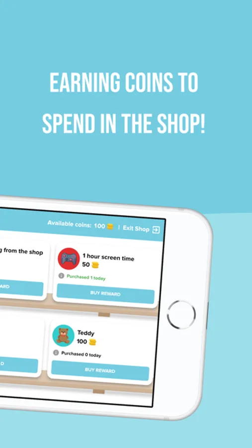 Children can access child mode using the parent’s device or by linking their own compatible device. Child mode is where children can mark chores as completed, buy rewards from the shop, and more.