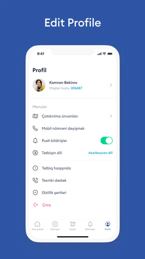 Çatdırılma xidməti gün içərisində və ya növbəti gün ərzində həyata keçiriləcəkdir. Əlavə sualınız yaranarsa tətbiq daxilində müştəri xidmətləri ilə əlaqə qura bilərsiniz.