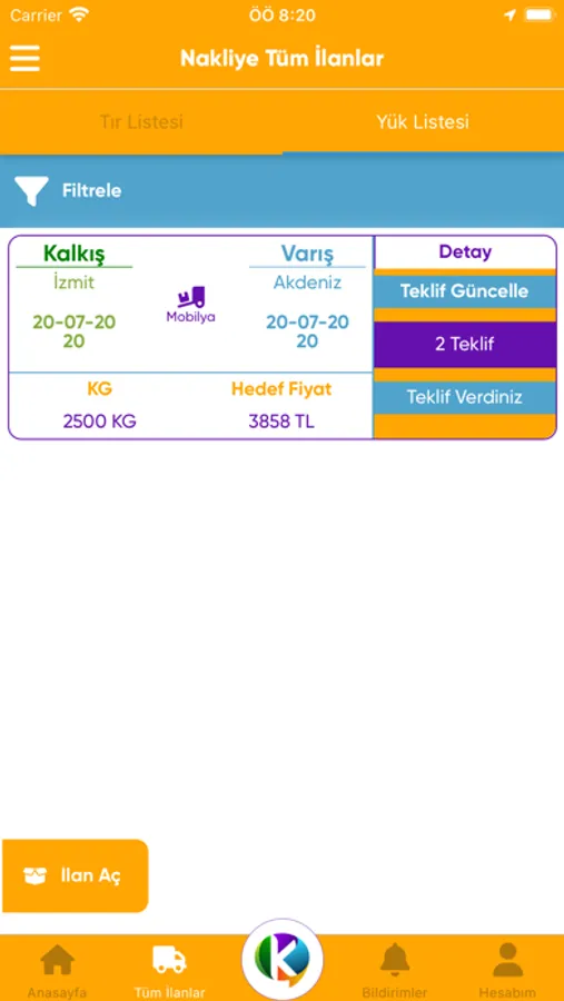 Nakliye ilanlarınızı Karvego uygulaması üzerinde ilan detaylarınızı paylaşarak yayınlayabilirsiniz. Ücretli üyelik seçeneklerimiz ile ilanınızı üst sıralara çıkarın ve Karvego'nun ayrıcalıklarından faydalanın.