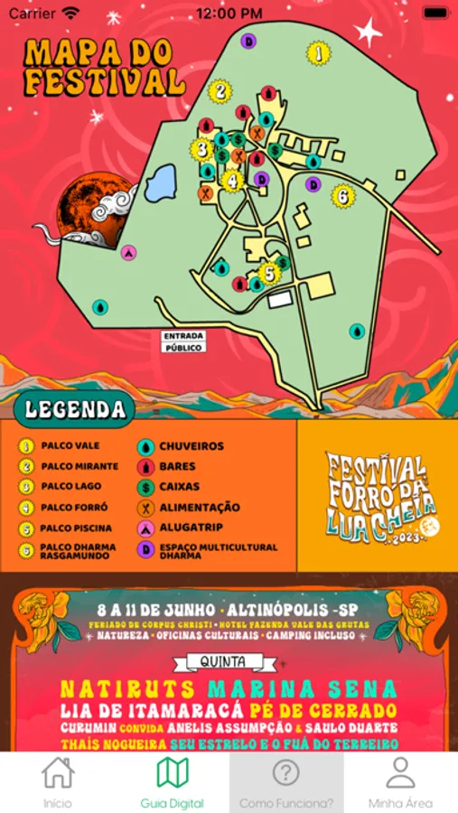Com esse app, você vai conseguir ter as informações atualizadas do evento como a programação dos shows e também a um guia digital, que é um mapa interativo com os principais pontos do festival. Além disso, você conseguirá acompanhar sua evolução durante os 4 dias de evento, verificando sua pontuação e quanto você já reciclou.