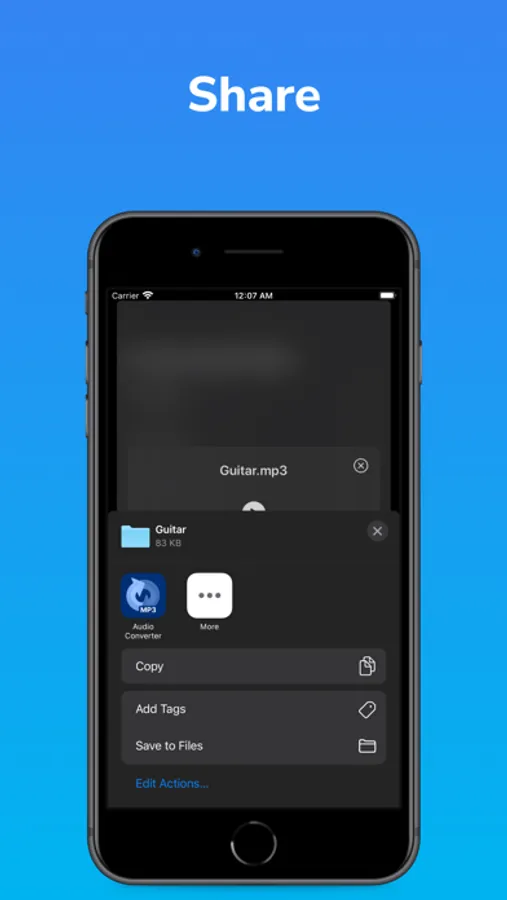 Share/Export the converted files with other apps, airdrop or save in your device.