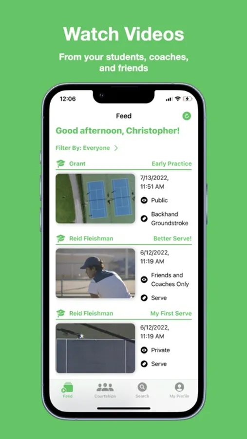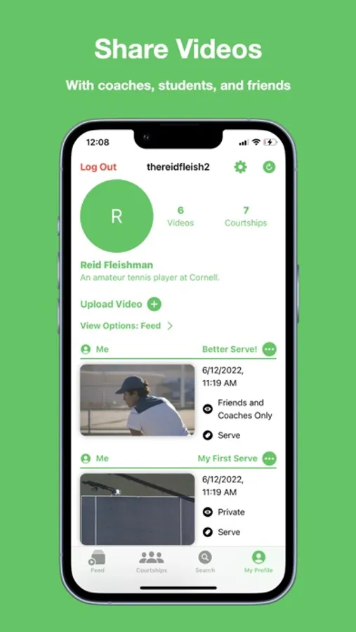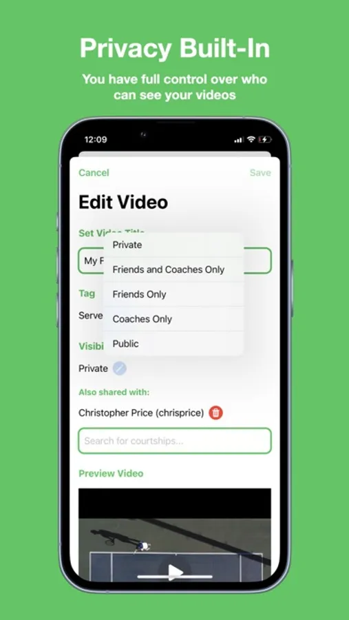 • Adjust the visibility of each video to your intended audience. You can have private videos for your own safekeeping, or share some with your friends, coaches, or the world.