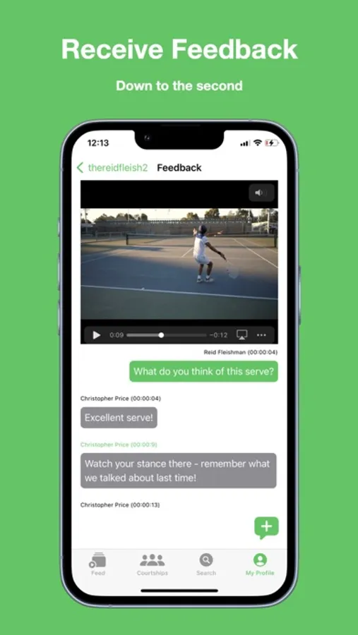 • Comment on specific timestamps of other users’ videos, and post your video for others to leave feedback. Your feedback mechanism allows users to leave the clearest and most specific feedback, and makes viewing feedback quick and simple.