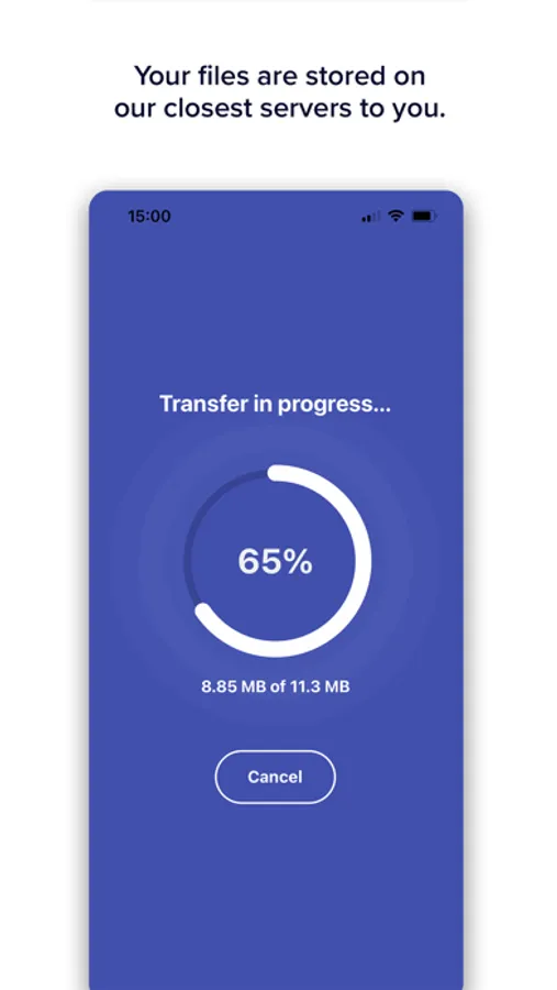 Wherever you are, select your files and validate to start sending your files to our secure servers near you.