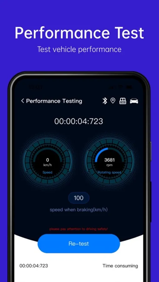It can test the acceleration, braking, and other performance of the vehicle, and provide analysis reports.