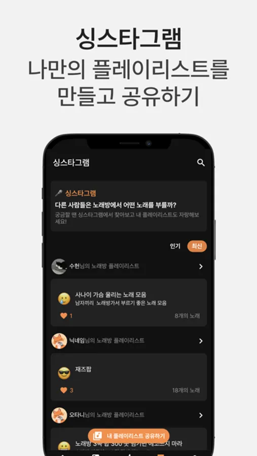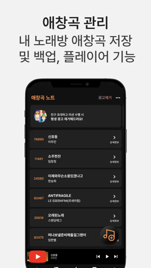 - 애창곡을 모아서 저장하고 관리할 수 있어요!