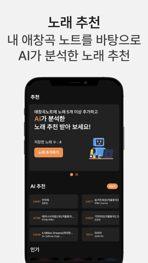 - 나에게 딱 맞는 맞춤 노래를 추천받을 수 있어요!