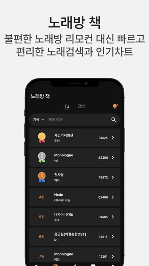 - 노래방에서 부를 노래의 가사를 편리하게 바로 찾을 수 있어요!