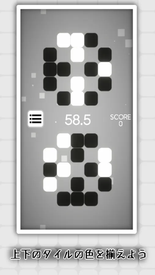白黒のタイルをタップして、上のタイルの色と合わせよう!