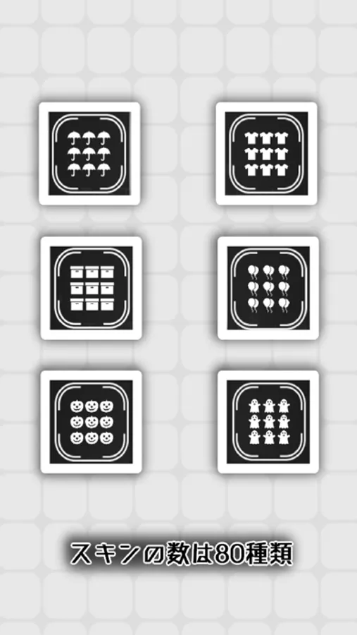 四角や丸、本、傘、太陽などいろいろなイラストのスキンに変更できます。