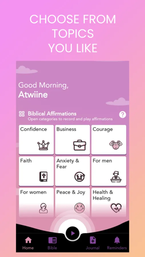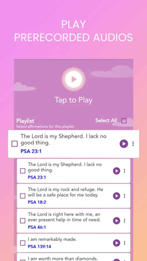 * Play and listen to prerecorded biblical voice affirmations