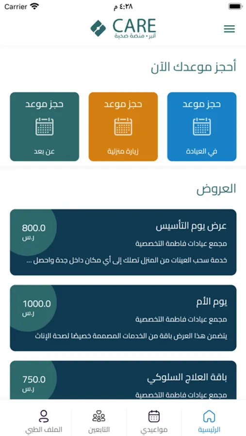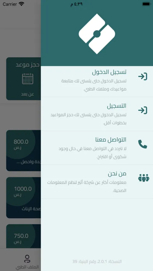- تخدم المراجعين بالاستفادة من الخدمات الطبية كملف رقمي متكامل عن طريق التطبيق