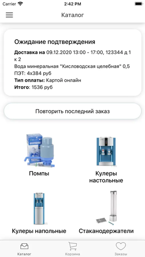 Приложение для заказа воды в городе Киров