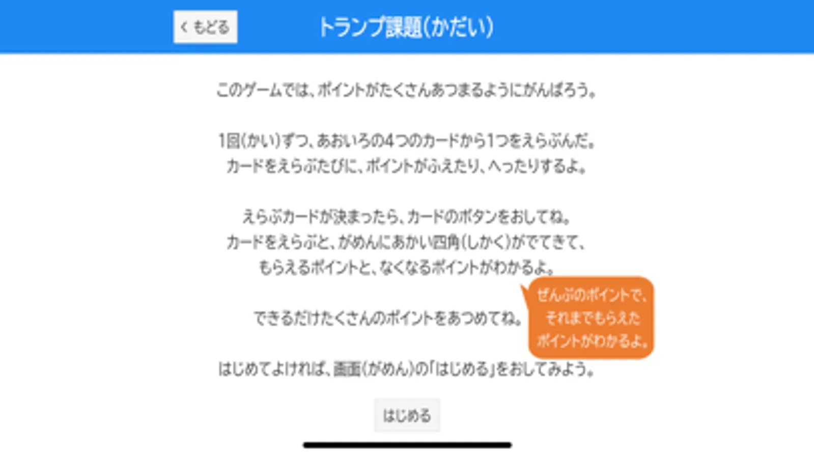 簡単なゲームを使った教育アセスメントアプリ