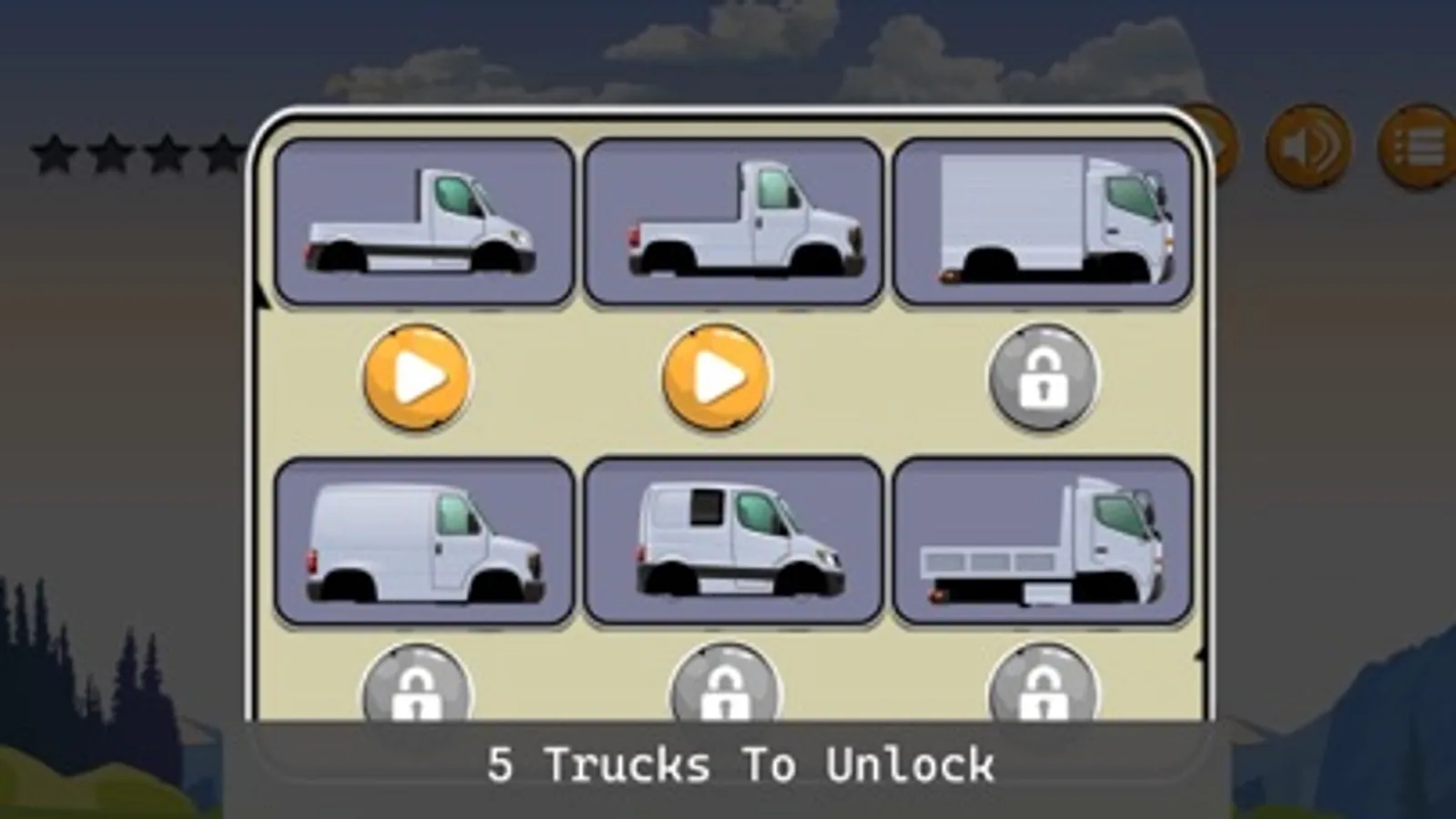 - Unlock 5 different trucks as you complete stages