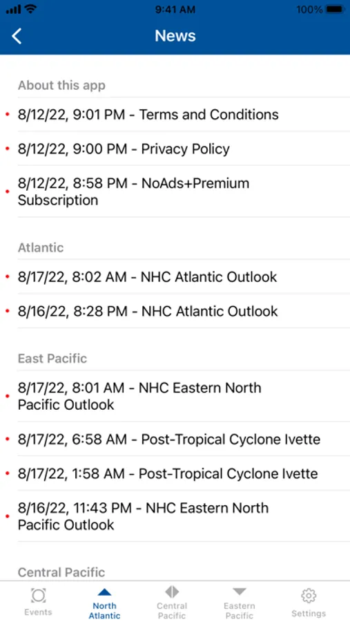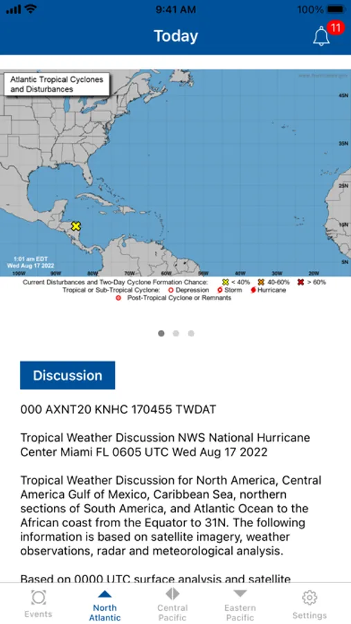 Get real-time Hurricane, Storm, Tropical Cyclone, and other weather disturbance updates directly to your iPhone and iPad.