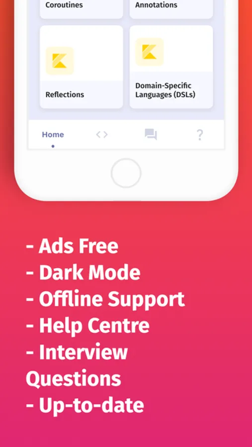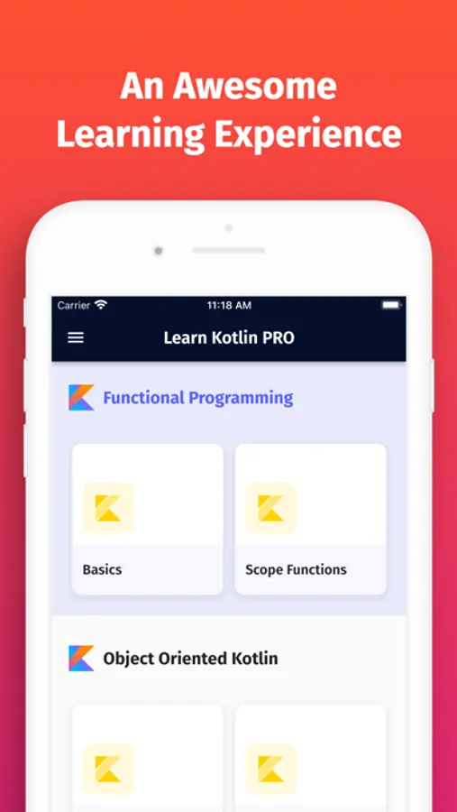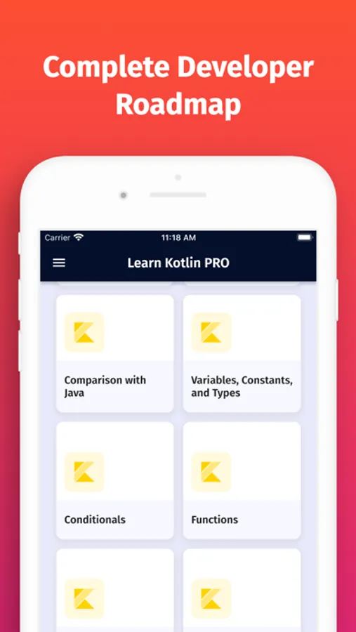 This App is going to be your best friend. This app contains all the major topics of Kotlin Programming Language with Code Examples. With its beautiful UI and easy to learn guide you can learn the Kotlin Programming in few Days, and this is what make this app different from other apps. We are constantly updating this app with every new major Kotlin language release and adding more code snippets.