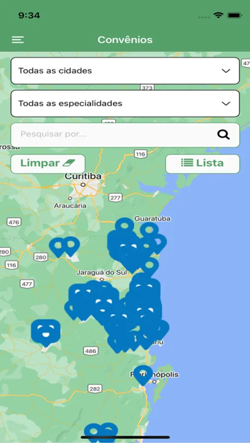 Buscar conveniados e especialidades do Plano Santa Catarina;